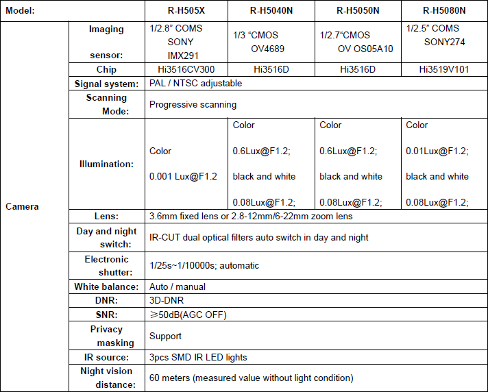 l H.265 Video compression, Full metal case,4 models: 2.0MP starlight ,4.0MP, 5.0MP,