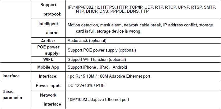 l Optional functions: WIFI / Alarm / Audio / TF Card slot / POE .
